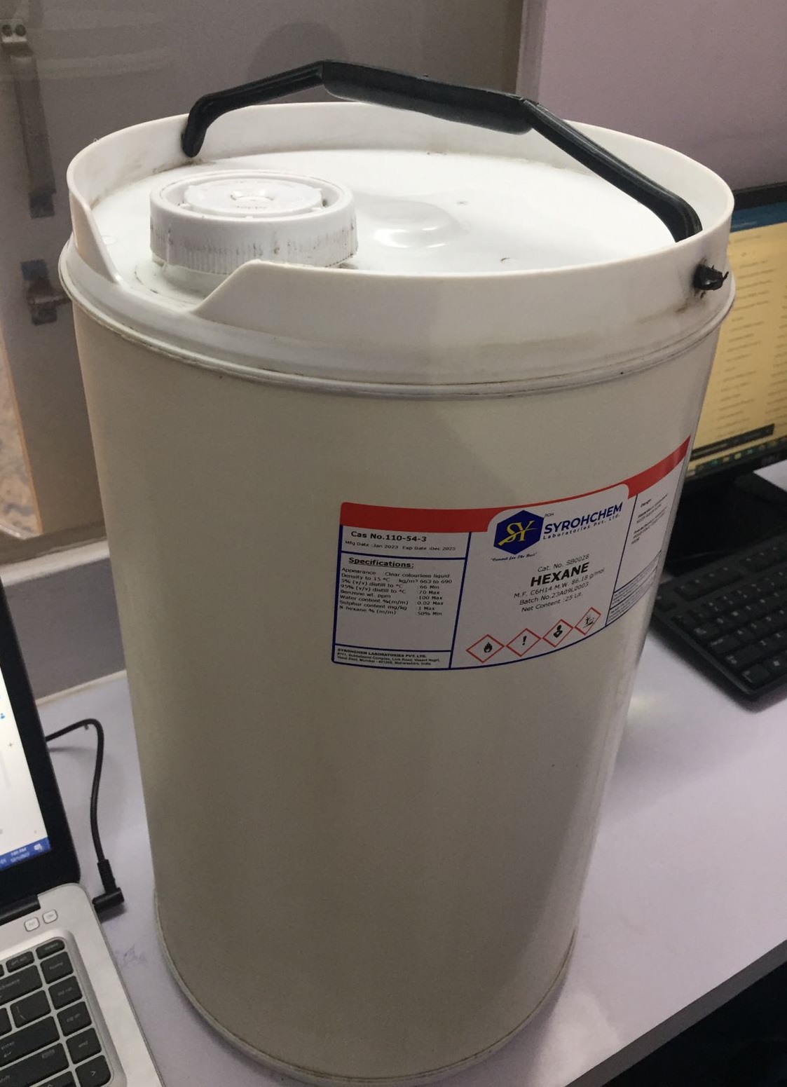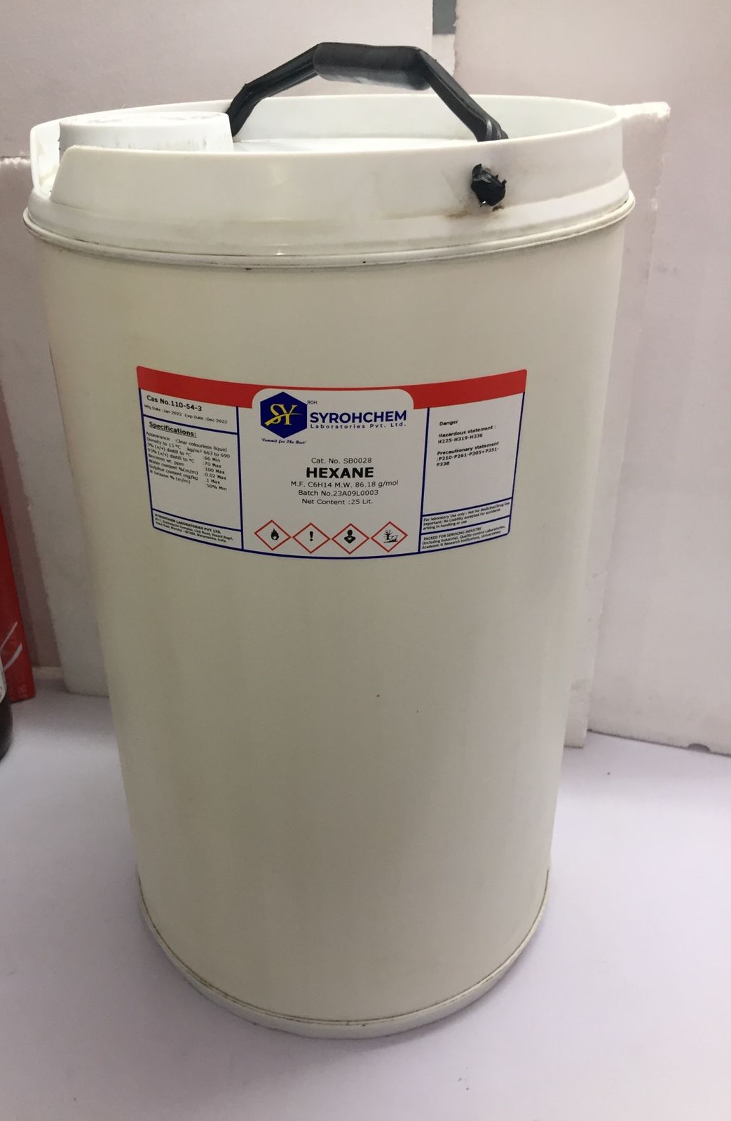 Hexane LR Grade is a chemical made from crude oil. Pure n-Hexane is a colorless liquid with a slightly disagreeable odor. It is highly flammable, and its vapors can be explosive. Puren-Hexane is used in laboratories. Most of then-Hexane used in industry is mixed with similar chemicals called solvents. The major use for solvents containing n-Hexane is to extract vegetable oils from crops such as soybeans. These solvents are also used as cleaning agents in the printing, textile, furniture, and shoemaking industries.